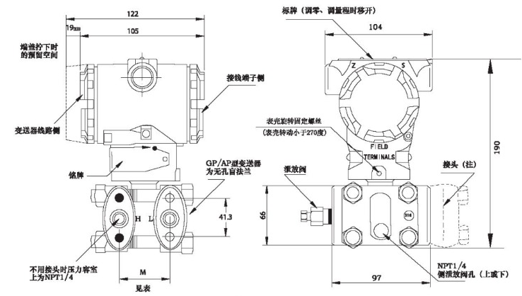 冷凝管與散熱器。測量介質(zhì)溫度應(yīng)處于電容式壓力變送器工作溫度范圍內(nèi),如超溫使用,將會產(chǎn)生較大的測量誤差并影響壓力變送器的使用壽命;在壓力變送器的結(jié)構(gòu)生產(chǎn)過程中,會對溫度影響進(jìn)行測量和補(bǔ)償,以確保其受溫度影響產(chǎn)生的測量誤差處于準(zhǔn)確度等級要求的范圍內(nèi)。在溫度較高的場合,可以考慮選擇高溫型壓力變送器或采取安裝冷凝管、散熱器等輔助降溫措施。